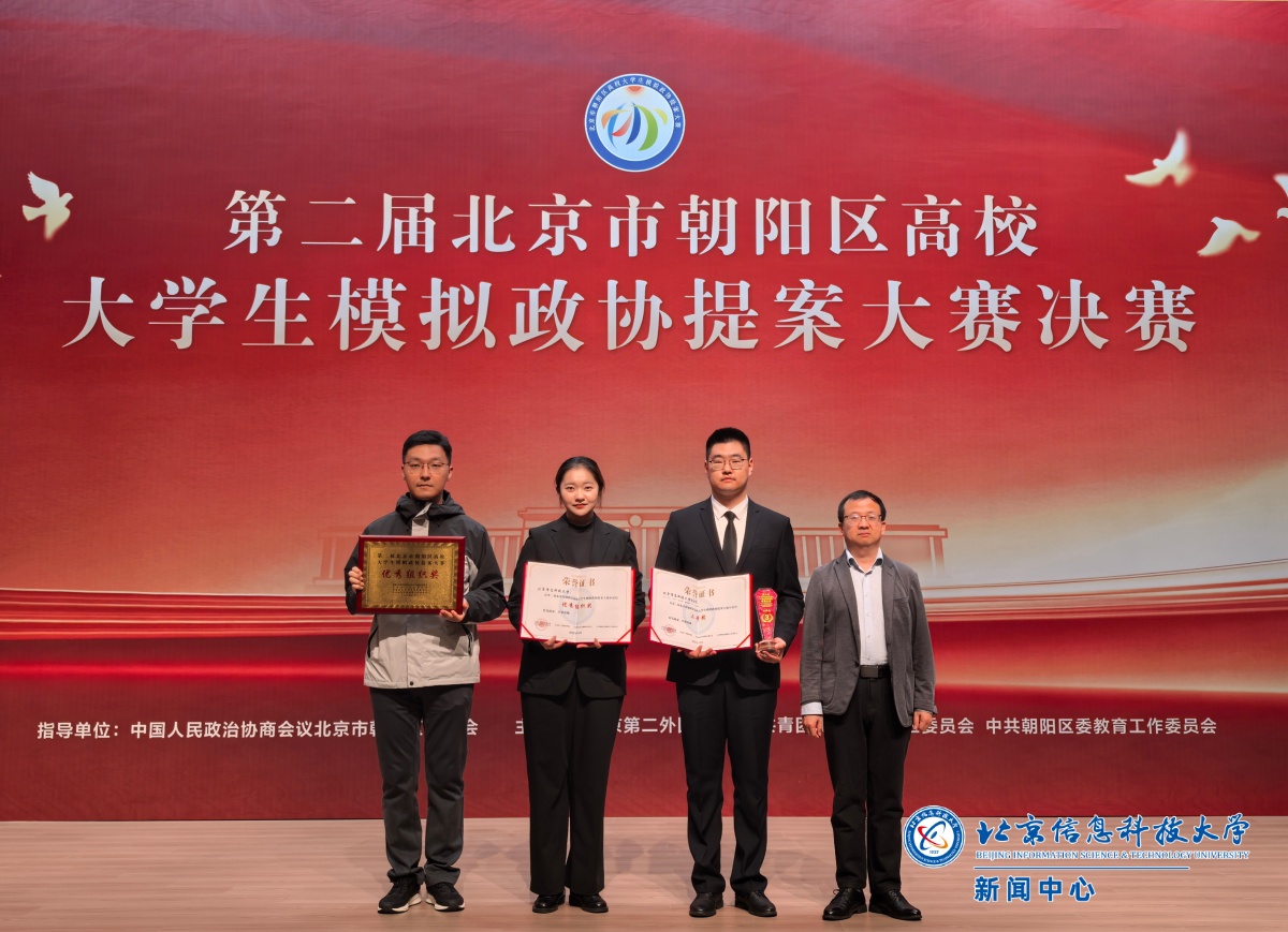 10月16日下午,第二届北京市朝阳区高校大学生模拟政协提案大赛决赛在北京第二外国语学院圆满落幕,经过激烈角逐,我校3044AM永利集团研究生苏芮、王伊雯、任欣璐团队荣获三等奖,学校被授予优秀组织奖。